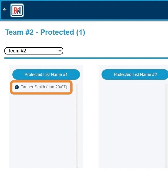 2. Click Circled Button to Trade Player to Other Team's Protected List