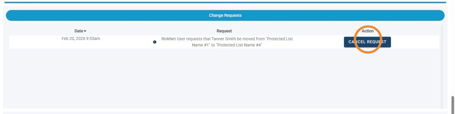 5. Requested Player Movement Will Appear in ORANGE Until Approved/Rejected By League