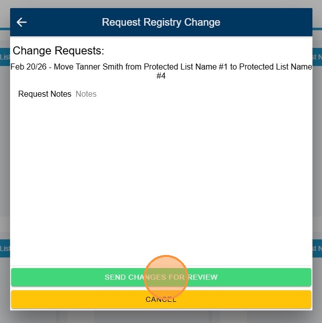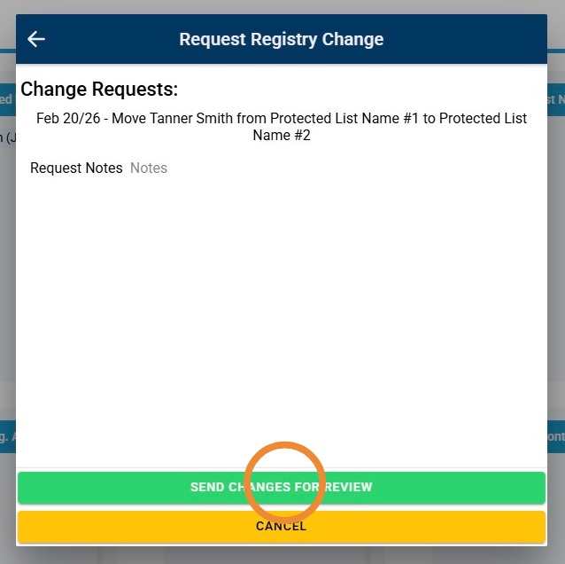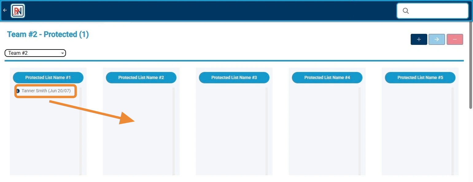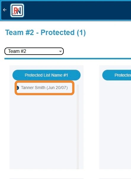 2. Click "->" Button to Begin Request to Move Player on Protected List